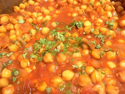 Organic sprouted chickpeas, organic tomatoes, organic onion and an array of fresh LOCAL organic herbs & non-irradiated  spices.