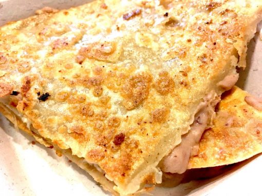 I love this quesadilla! I missed eating them when I gave up dairy products but this is way better than any quesadilla I had with dairy on it. She cooks it slow and browns it to perfection. Highly recommended!
