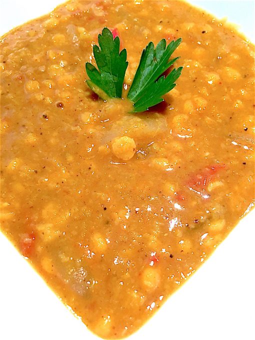 Organic red lentils, organic onion, organic coconut cream, organic ginger root, organic turmeric, organic lime and organic, non-irradiated spices.
