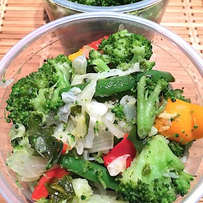 Seasoned with Bragg’s Liquid Aminos, organic, non-irradiated black pepper and raw pink Himalayan sea salt.